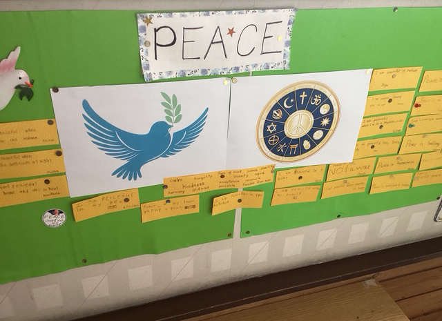 『Valentine's Day, Peace and Love』をテーマに、コラージュ制作と英作文を作ってもらいました。